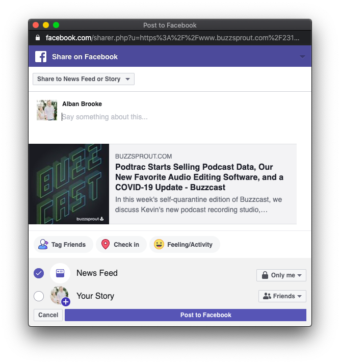 You should now be able to share your link to your Facebook account