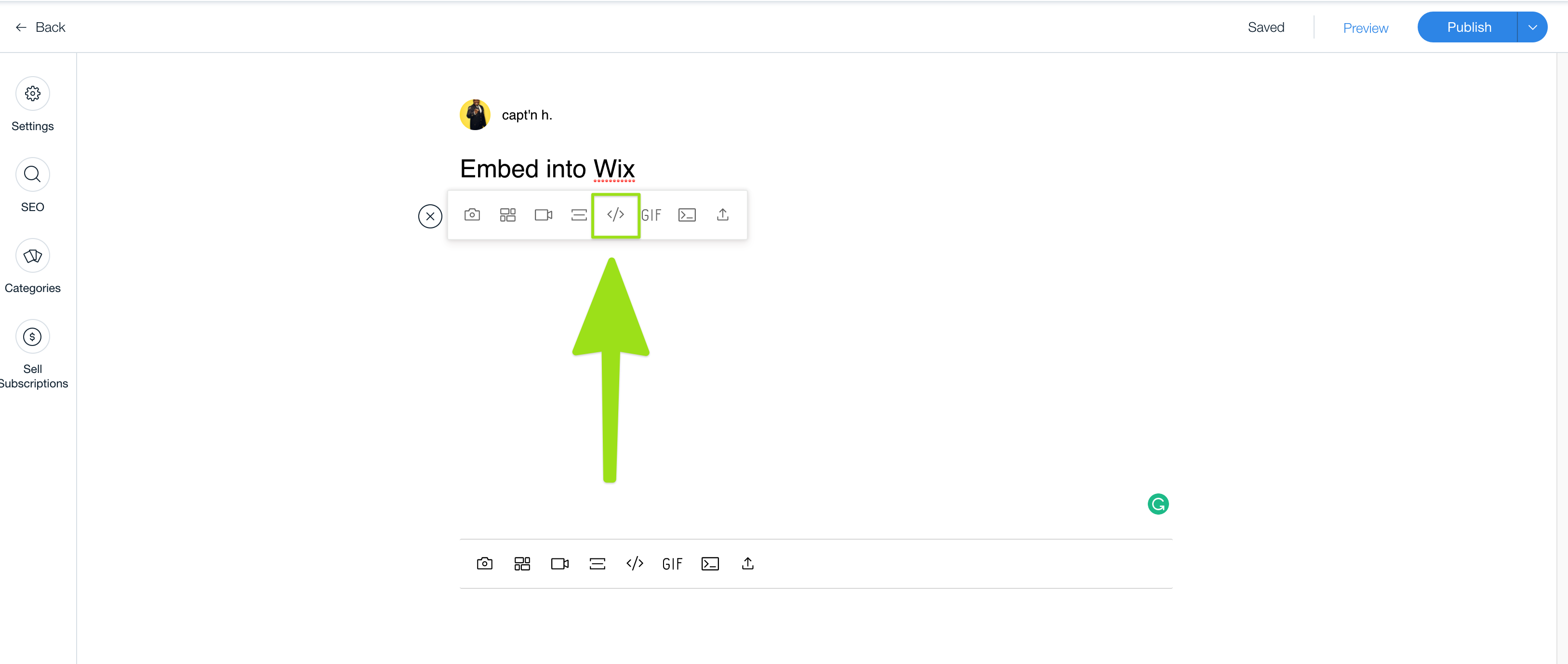 - Log into your Wix account and create a new post or edit your current post.