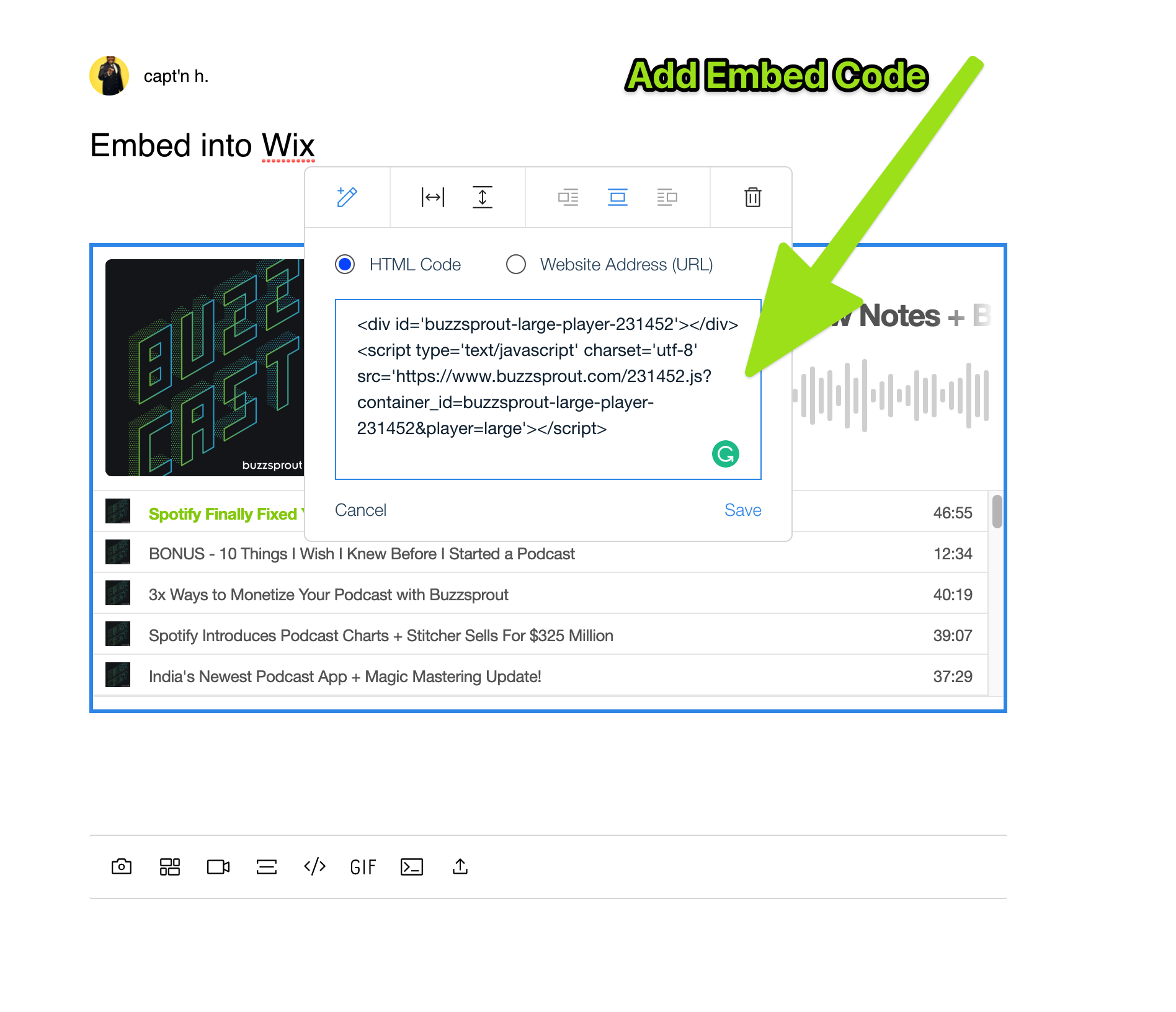 If you are hosting your website with Wix, you can easily add your episodes to your posts by using Buzzsprouts embed players. Check out these steps to get your episodes embedded into your website!