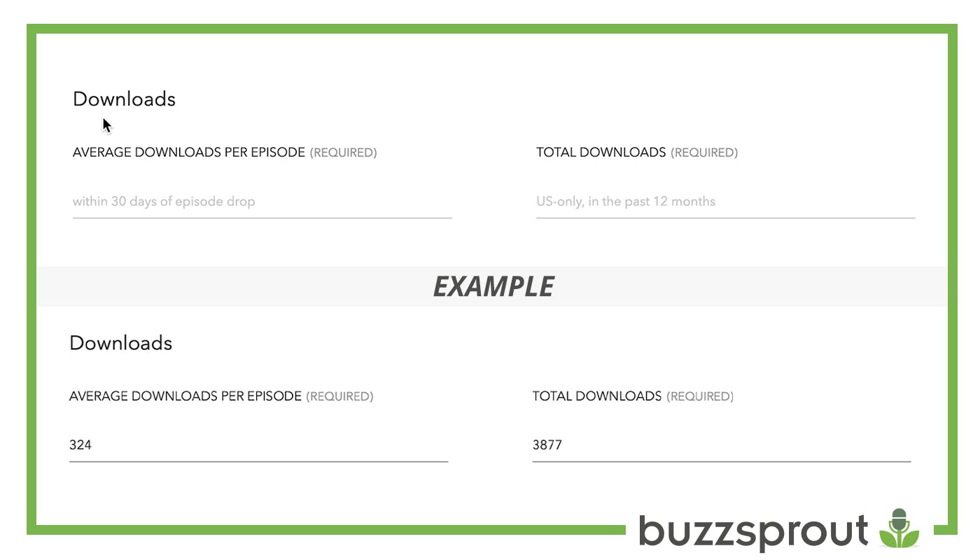 Pandora wants to know how many United States downloads your podcast has received in the last 12 months since a majority of their users are in the US.