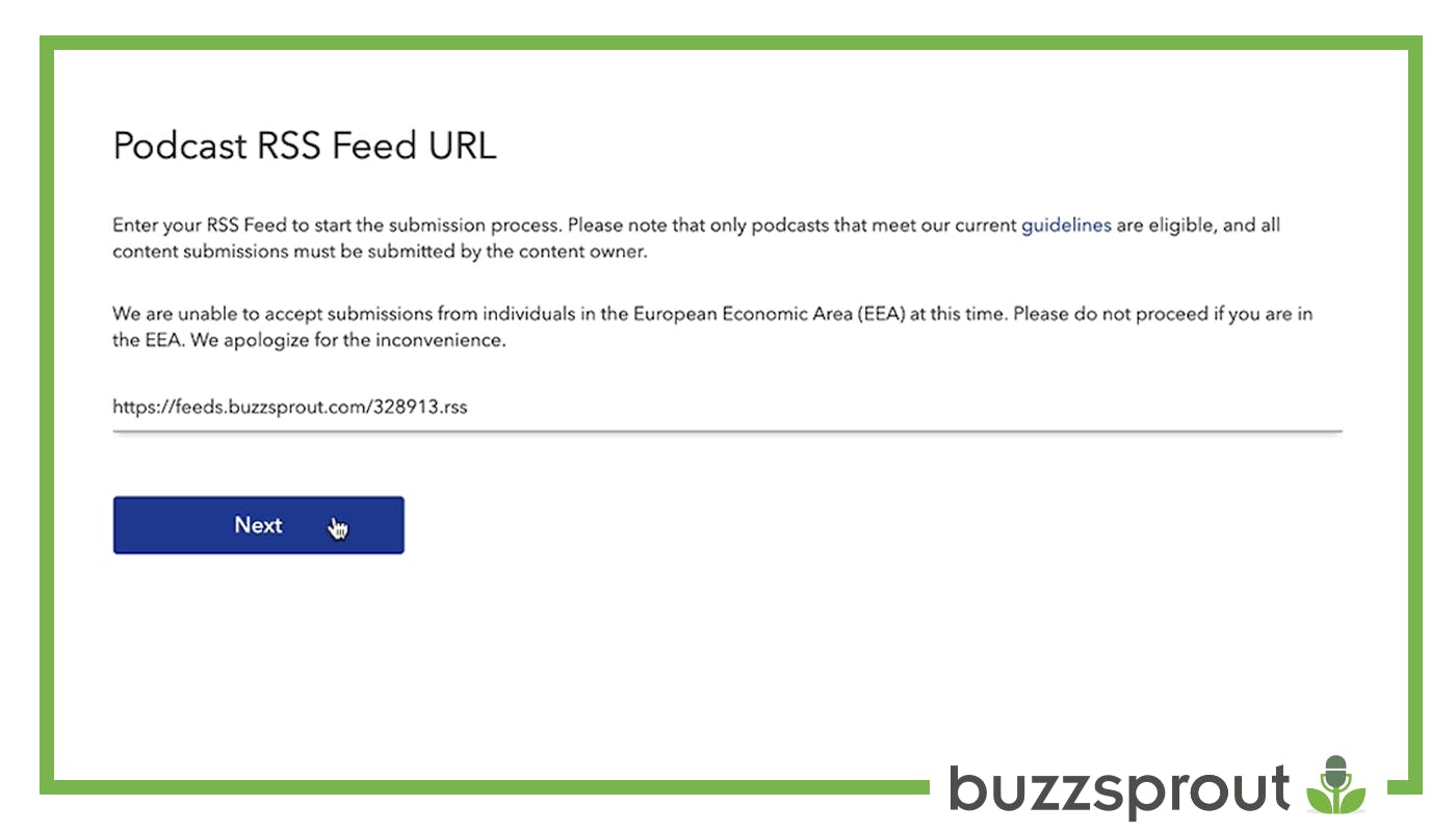 Make sure that each of these details is correct before moving on. If something is incorrect, that means there is something amiss with your RSS feed. Reach out to your podcast host or use a feed validator like Podbase to see what's going on.