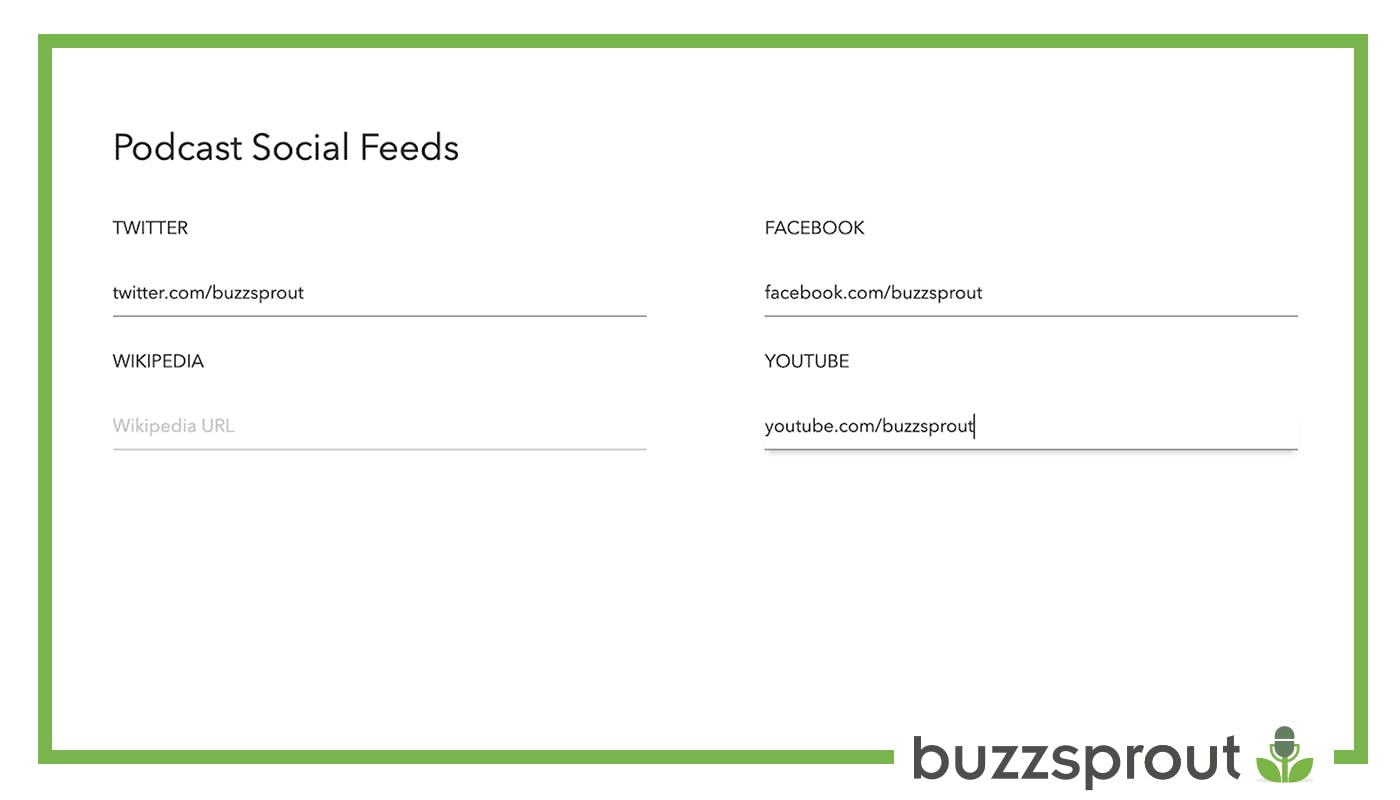 Provide links to your podcast's Facebook page, Twitter account, YouTube channel, and Wikipedia page (if you have one).
